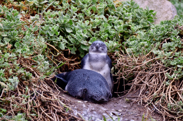 We would recommend driving to Cape Town along the spectacular oceanside R44 route from Hermanus. You simply must take a stop at the quaint coastal town of Betty’s Bay and go to the penguin colony at Stony Point Nature Reserve. It houses the cutest little creatures you will see over the entire vacation. The African penguins have an endangered status, but live openly along this stretch. You will see little penguin signs along your drive once you reach Betty’s Bay, directing you towards the colony. We were greeted at the parking lot by a signboard which asked us to check under our cars for penguins, and lo and behold, we could see penguins (including a penguin nest with a teeny-tiny chick) right behind the signboard, and there were three penguins strolling along the parking lot as well!