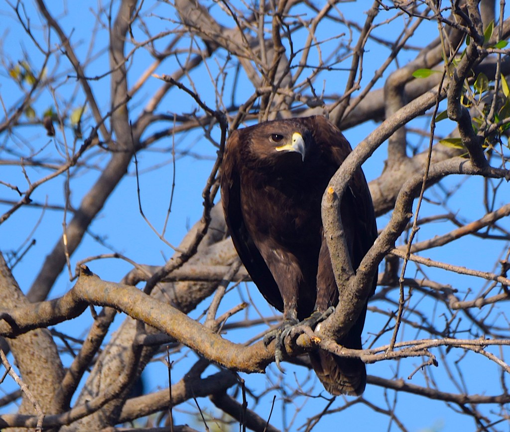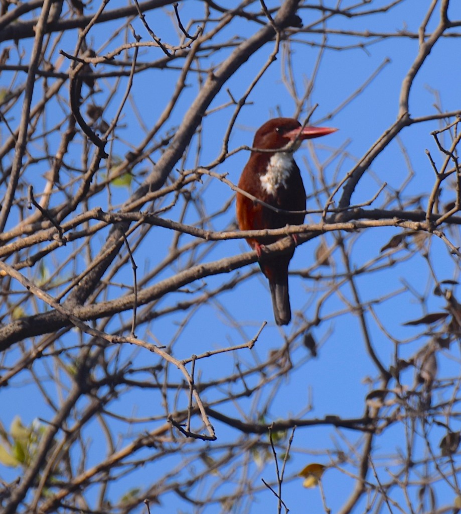 We were also lucky to catch a glimpse of the white-throated kingfisher relaxing over a branch, as also a majestic eagle.