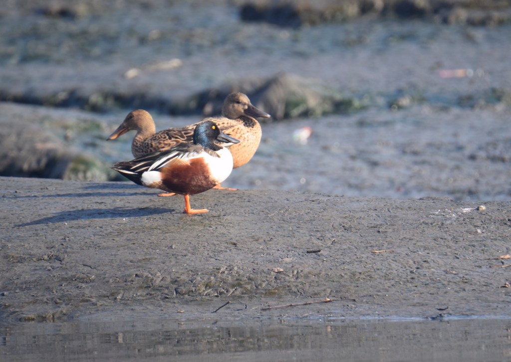 We also passed numerous shovelers. These beautiful ducks migrate all the way from Europe to enjoy the Mumbai summer. So-called due to their spatulated beaks resembling a shovel, the drake (male duck) looks handsome with a dark green head, white breast and chestnut belly and flanks. The female on the other hand is dull brown in color – this helps in camouflaging when they lay eggs.
